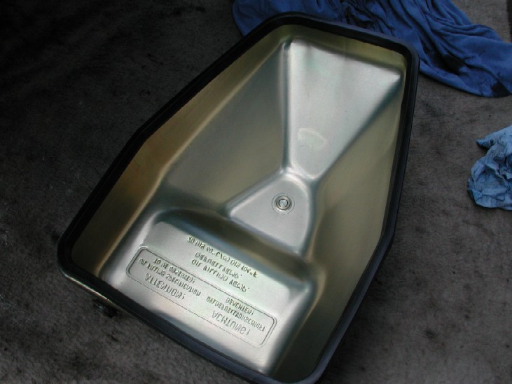 With the sump off, oil will continually drip from parts of the gearbox, so ensure you leave a container of some sort underneath until you have refitted the sump. Whilst the gearbox continues to drip / drain to get as much as possible of the old oil out, give the sump and spacers etc a good clean up. Note the small rectangular magnet inside the sump that is there to collect the very fine particles as the box "wears". It will most likely be covered with a fine mush of filings / dirt. That is perfectly normal, however there should not be any large metallic items stuck to the magnet, if there is then you have a larger problem that needs to be investigated.