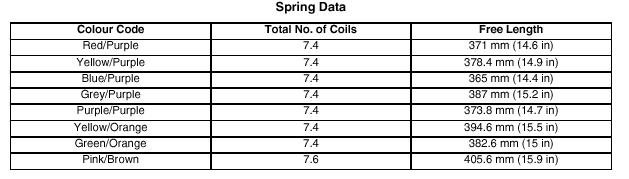 My car is a TD5 and because the Diesel is heavier than the V8 it is already fitted with longer "free length" springs. Below is a table of the "free length" of the front springs
