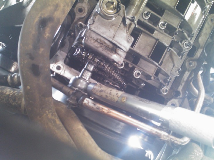 Simply fit the new bolt into the pump sprocket and tighten / torque it up to 25NM, 18Lbs FT or 216 Lbs IN depending on your torque wrench. A 3/8 drive torque wrench is about the right size and probably the biggest you can fit into the space to torque it up with.