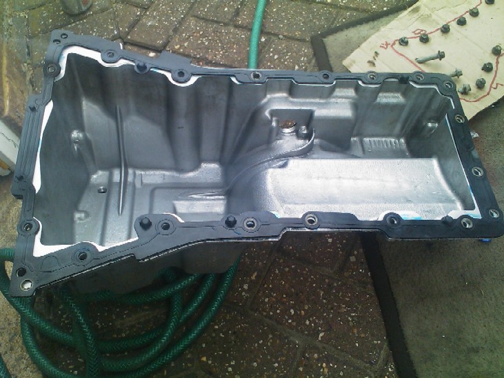 Whilst the sump was off, I took the opportunity to give it a full clean / degrease both inside and out. Below is the clean sump with a new gasket installed.