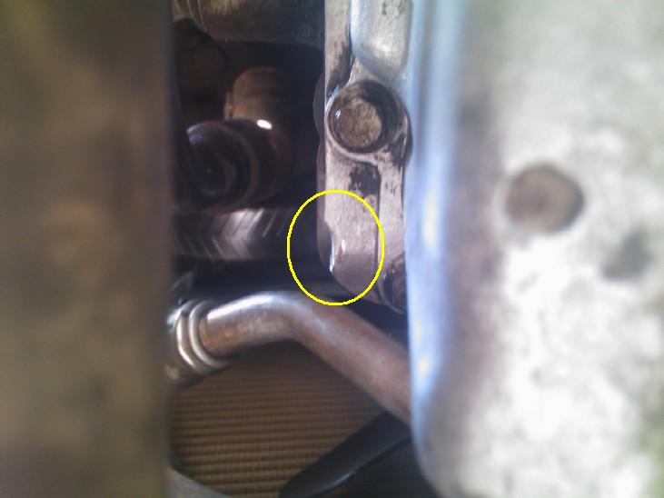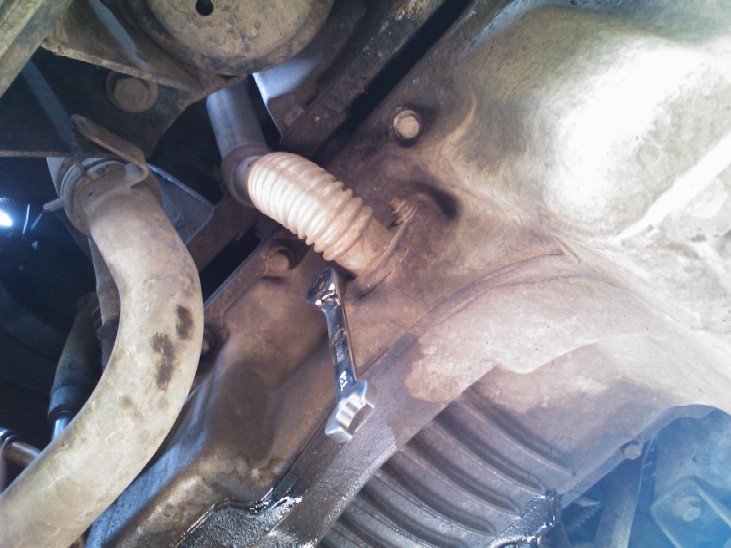 Next, undo the clamp that also holds this pipe on the drivers side of the car, this will allow you to flex the pipe out the way when removing the sump.