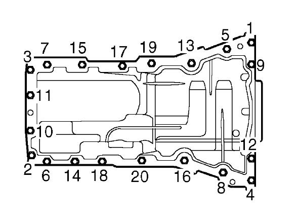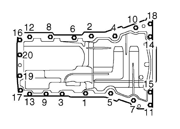 "if" you have nuts, then remove them completely as the pipe will stay sat on the studs and "help" support the sump when you remove it. "If" you have bolts, then it may be a good idea to leave them in just 2 or 3 threads so you can easily remove them by hand when the sump is ready to come off, but they will help support it whilst temporarily left in. Now its a case of undoing the remaining sump bolts. The is a required sequence to do this, so I have copied it here below directly from the workshop manual.