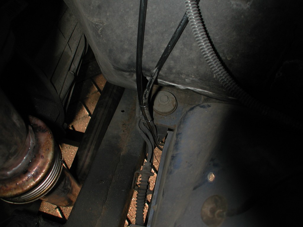 And through the heated windscreen grommet, the same on both sides. Make sure its routed away form the bonnet hinges......I also tie-wrapped it to the wiring here to hold it in position.