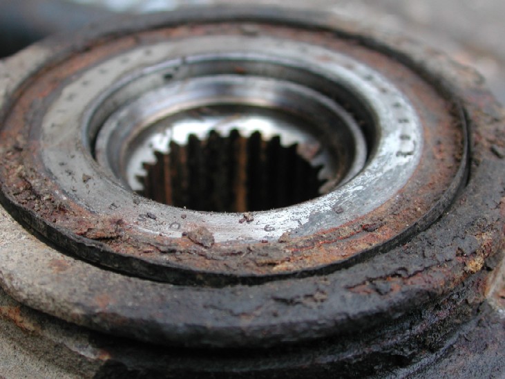 So with a combination of the hammer on the rear of the hub, and the puller, the hub assy came away nicely both from the steering knuckle and the drive shaft and there is no need to replace / disturb any oil seals etc ;o)