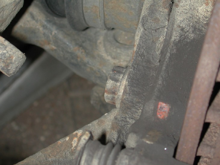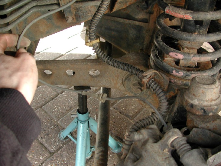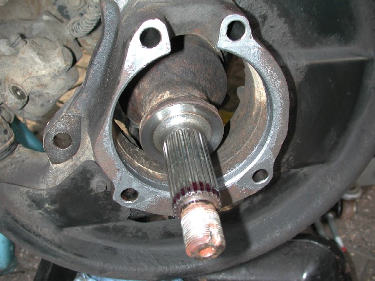 Feed the hub of the drive shaft and also feed out the ABS wiring loom. Heres the back of the hub showing the bearing etc, looks a little worse for wear!!.