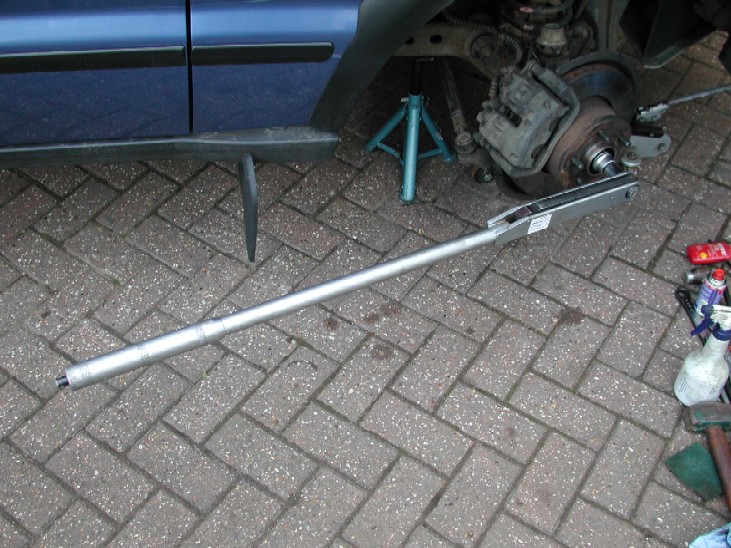 When your ready to start the re-assembly, you need to apply a 3mm wide bead of loctite 640 (or threadlock) as above to the very end of the driveshaft. This will then be smeared down to the splines as you push the new hub assy on. Make sure your have all your tools and bits ready at hand as the Hub assy must be refitted and finally torqued up BEFORE the Loctite goes off!! Don't panic its not a 30 second race, but once you start the refit process carry on completely at least till you get the Hub / Disc / Caliper back on ready for the final torque to be done to the NEW stake nut. The refit is a reverse of the removal, but MAKE SURE you "feed" the new Hub / ABS loom into the steering knuckle as you refit it. Don't forget the bracket that fits the top rear bolt for the ABS loom. Once the Hub / Brake Disc / Pads / Caliper is all back on, its time for the Big torque wrench to earn its money. Torque the drive shaft nut up to 360Lbs Ft or 490 NM
