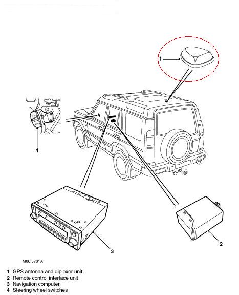 This antenna did work very well, and is simple enough to get it to sit on the dash with a sticky pad and the wire go down behind where the windscreen is and up to the head unit. GPS antennas must have a clear view directly upwards to work at their best. This is the cheapest and easiest option if you don't want to drill your roof etc and will work 100% with the Becker unit. I ran this for several weeks with a working system and it performed very well, all I still had to do was connect up the steering wheel switches and the CD changer, but I really wanted a roof antenna and so came up with another idea... The Freelander has the same system, but uses a combined GPS / Radio antenna in the "whip" style. This is readily available at the dealers and is approx £50 for the base and whip. This antenna obviously requires you to drill your roof to fit it, it fits at the front of the roof on the Freelander and this is the best option for the Discovery as well. This is where I fitted it, it requires 2 small holes drilling and is held in place by the connections underneath. this it what it looks like fitted on my Discovery2. It actually looks really good in my opinion and is exactly the same angle as the sunroofs when they are open and does not actually increase the height that much either, even it was to "catch" something, its flexible and will just flex out the way..... The ideal spot for it, is unfortunately where there is a roof strengthening web underneath, but a small amount of cutting and it can easily be placed there.