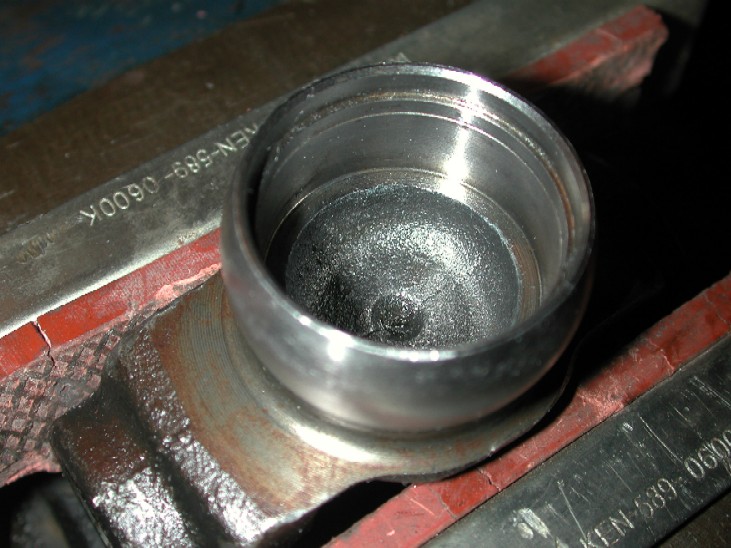 The tool made it so easy that it was a VERY worth while purchase !! I then cleaned all the old grease from the bearing housing in the prop yoke, and re-packed it with new grease ready for the new bearing. I filled up the "un-machined" area you can see below with new grease.