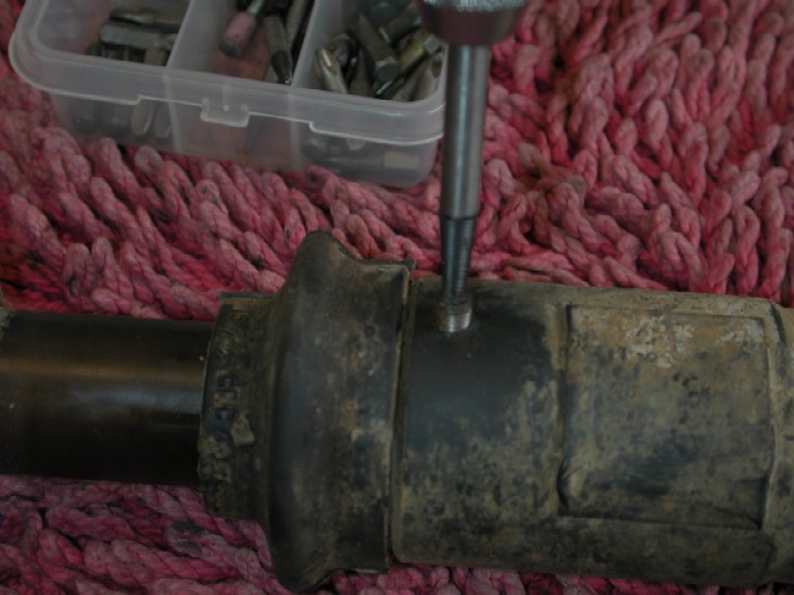 As well as the greasable UJ's, both the front and rear prop shafts have a sliding splined section that also has a grease point. The "official" way is to remove a blank, screw in a grease nipple, grease the shaft then refit the blank again on the front shaft. The rear prop shaft you will find probably has the nipple left in place. To remove the "blank" I used a screw extractor to wind it out, it should not be tight to remove.