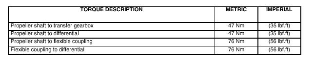Now refit the prop shaft back to the car in its "original" position which you marked before removal, and tighten all the nuts and bolts to the specified torque figures below