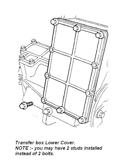NOTE !!! These bolts are often VERY corroded and will shear off if to much force is applied.......I "felt" a couple when first attacking the job and they did not move straight away......so with that in mind I heated ALL of them with a blow torch in turn and used lots of penetrating fluid before attempting to undo them. Fortunately they all came out and I feel it was most likely the heat of the blow torch that did the trick. You may well find some of yours have all ready been replace with nuts and bolts because they have been sheared in the past, whatever your situation if your not "prepped" for a fight, then it may well be a wise choice to install the new sump without removing the cross member. I STRONGLY recommend the use of 6 point sockets for this job. Once the cross member was off I then drained the oil as per the transfer box box oil replacement page. Next you simply unbolt the lower transfer box cover, then carefully clean up the mating surface ready for the new sump.