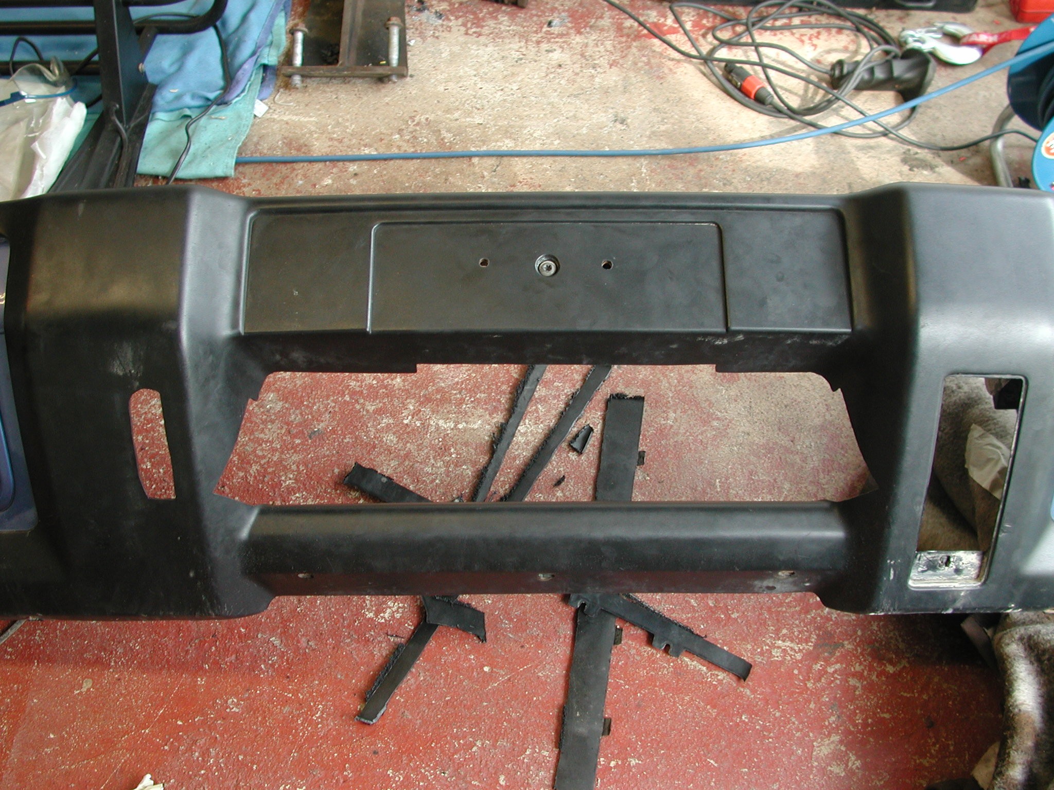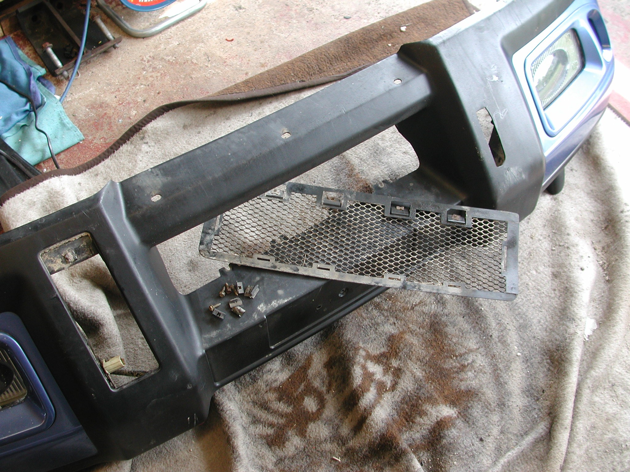 To start with you have to remove the lower mesh screen from the bumper, it simply unbolts along the top and unclips at the bottom. then its time to start cutting !!. I cannot tell you exactly what to take off, but its much better if you do a bit at a time and trial fit the bumper many times to get it right so you don't take to much off and spoil the look