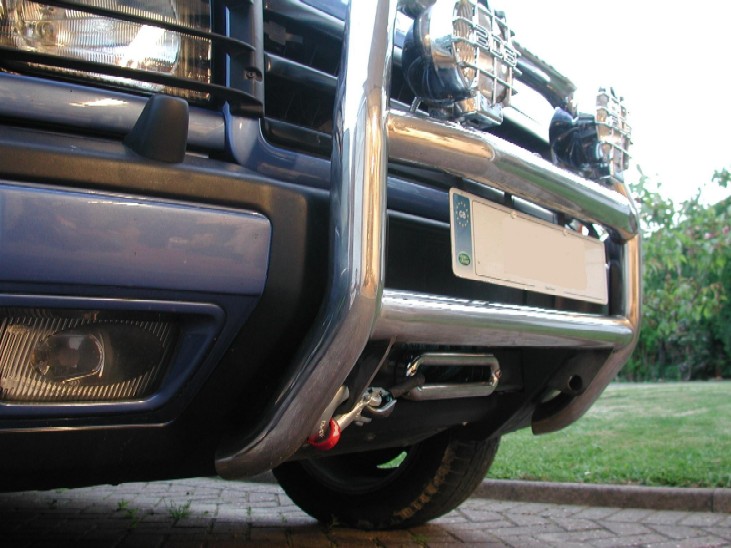 I 'm REALLY pleased how it all turned out as I was bit concerned that the A bar may get in the way, but as you can see it sits very nicely just below it, and the hook can be clipped onto the A bar recovery points when not in use |