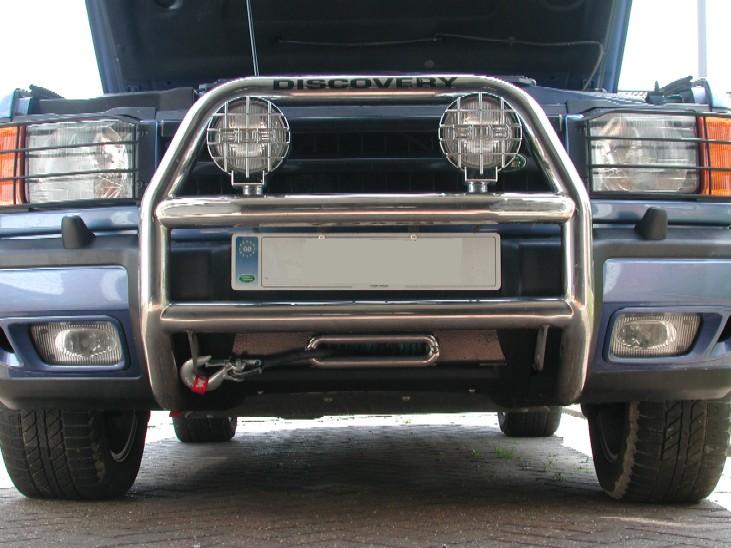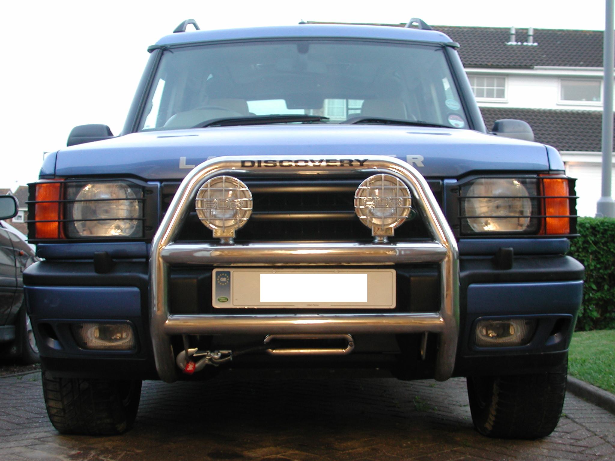 Its name reflects its straight line pull of 9500lbs which is more than adequate for most peoples needs. Its not the fastest winch in the world, but power for £'s it's as good as the rest if not better specified, how long it will last or perform who knows, but I have read some good reviews on them which helped in my decision when looking for one. I never bought mine "new" but got it at a great price, and its hardly been used !!. The winch when "new" comes with a wander remote lead, roller fairlead and long + and - cables to connect to your battery Mine never had the long cables with it, and no roller fairlead either, This did not really worry me as I fully intended to use a "synthetic" rope and roller fairleads should not really be used with those as they can "snag" and damage the rope. Also because of how I was going to install my winch the roller fairlead would not be "ideal" for the look I wanted to achieve. Mounting the winch is the biggest issue for you to work out, I wanted mine to be as "discreet" as possible but still fully usable so I purchased a "discreet" winch plate for the Discovery 2 from http://www.mailorder4x4.com . The plate is made by Bearmach who also do lots of other stuff for Land Rovers and have been for many years. This is what it looks like installed, this picture shows a roller fairlead. here is what you get, the main plate and to side brackets to bolt to the chassis rails.