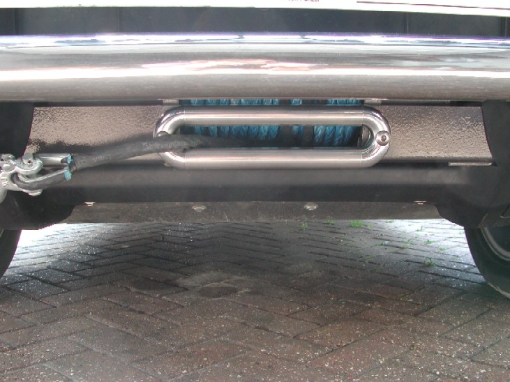Here above you can see just one side, You can see the ali "crashcan", then the A bar bracket , then inside that the mantec steering guard as well, so the total distance between the chassis rails is overall nearly 3/4 inch smaller than a Disco with no other addons, to this I would be also be adding the winch plate side brackets either side !! NOTE, "if" you have other addons as I do, you will need longer bolts to go through the chassis rails Below is the Fairlead I have used. You can get aluminum billet fairleads pretty cheap, but dirt and muck etc on the winch line can quickly wear them out, so I bought a stainless one also machined from a billet. Its extremely heavy for its size, but its beautifully made and as you can see by the picture is has a larger opening which is why I had to make my winch plate opening bigger to stop the rope getting damaged on the plate edges.