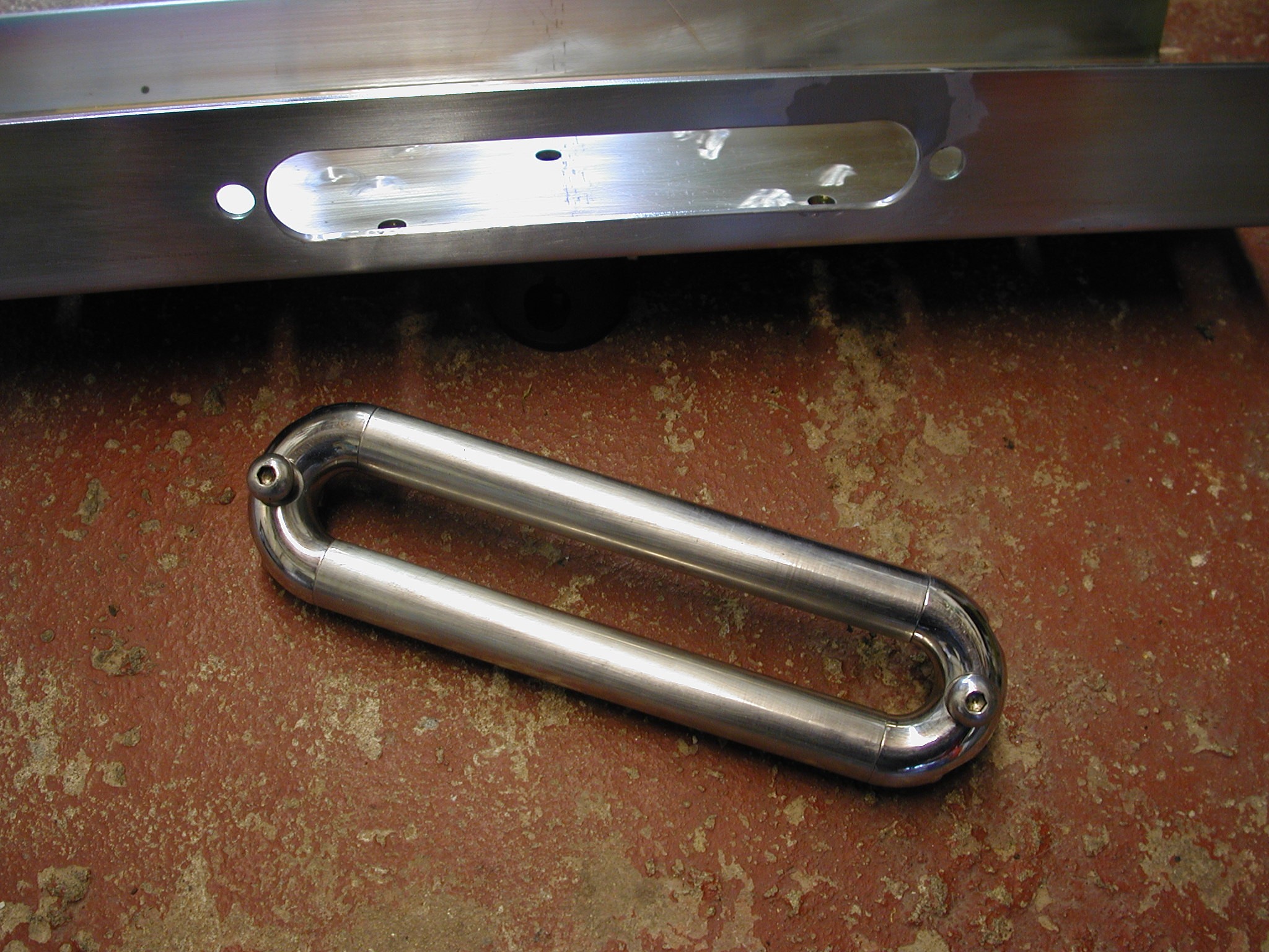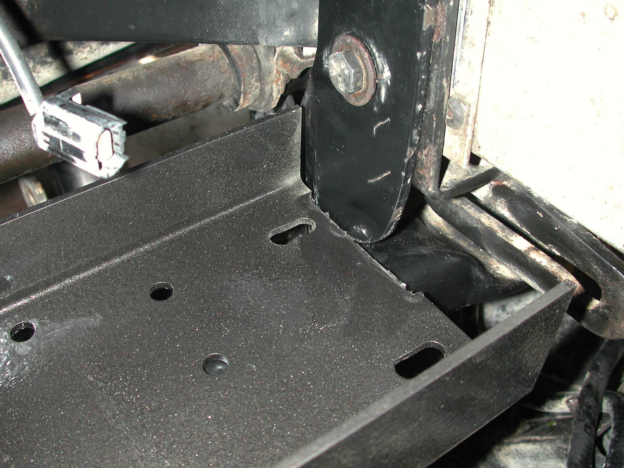 In total I had to remove approx the thickness of the the side brackets on either end of the plate and for about 2/3 of its depth, finally it fitted in lovely and was bolted to the chassis rails with new longer bolts and the brackets to the plate with some stainless button head bolts and nuts