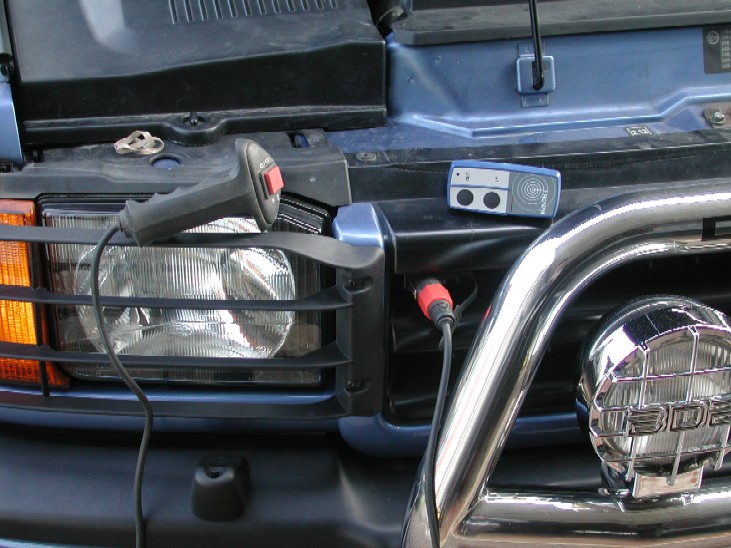 Next was the factory winch remote, which is plug in 12ft wander lead with the hand control on the end. The Socket for the wander lead is fitted to the front of the factory winch solenoid box. So this was removed and I looked for a place to fit this on the car. Many people drill a hole into the front grille and fit it there, but I wanted to avoid as much as possible drilling holes etc etc, so if it was all removed later on, then it would still look as if nothing was ever there. After choosing my location, I made up a small bracket to fit the socket, and sprayed it black to.