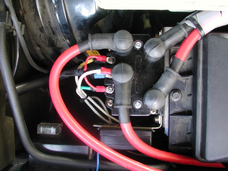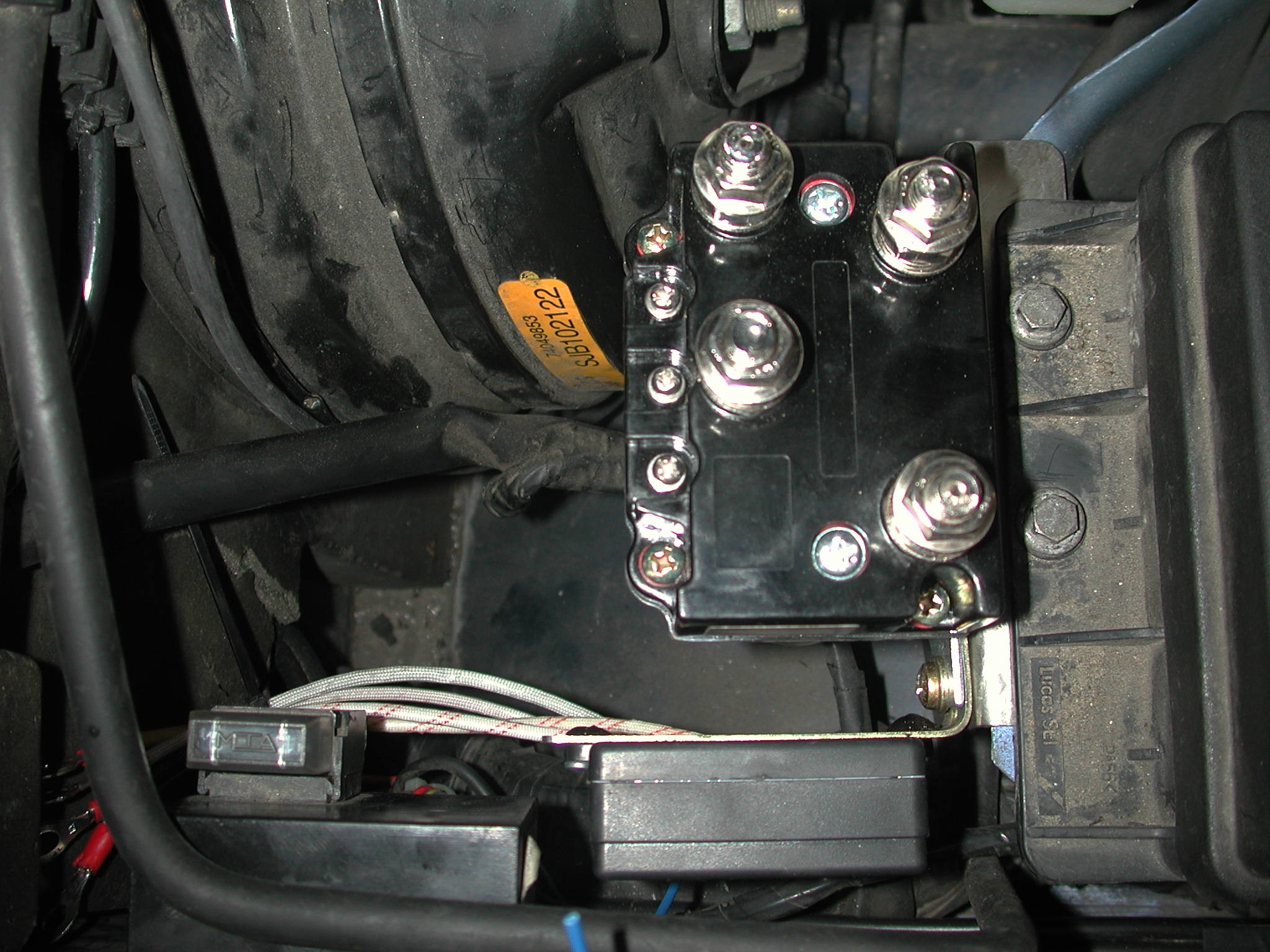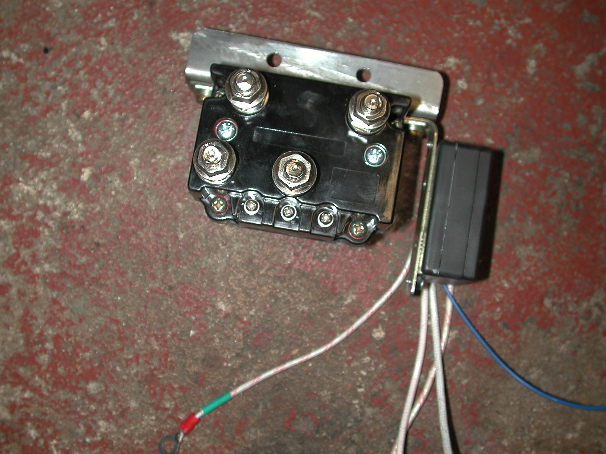 Because I'm using a discreet mount there is no room on the winch for the solenoid pack, so that was taken off, I won't be using the "factory" solenoids anyway as its even to big to re-locate and squeeze under the bonnet anywhere either. Re locating the solenoids into the engine bay is always a good idea to give them more protection when off road... NOTE the T-Max winch has the motor earth on the bottom of the motor, so its a good idea to connect this up before you fit the winch into the tray as it won't be possible to do it afterwards. Next was the issue of the winch solenoids. As I stated earlier the factory solenoids are probably the "weakest" part of the winch, so I replaced them with an "Albright" solenoid pack which is much smaller and neater and easier to find a home for in the engine bay.