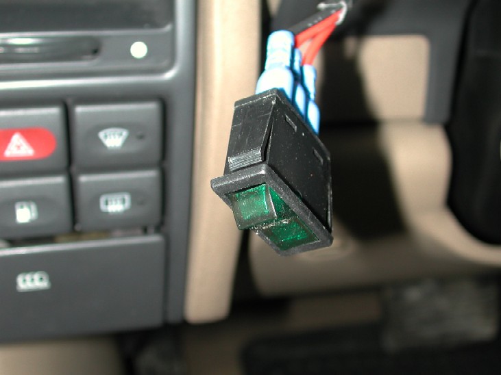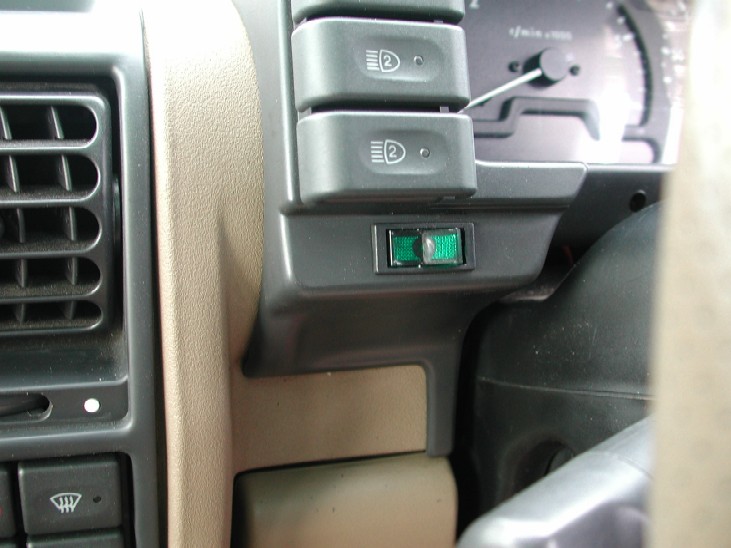The Discovery has a small "blank" on the dash binnacle below the factory fog light switches, this is where the "factory" winch cut out switch is designed to go. I'm unsure of what type of switch they use, but a standard 3 pin 12v automotive switch can be bought from Halfords and then its just a case of cutting the hole to fit. See the "blank" here below my factory Spot light switches, it is only on the left hand side (UK car.) Here is the switch I bought, I chose a Green one to match the existing colours of the dash lights, but you can get them in Red as well. It has 3 connections, +12v , Ground and an ACC connection which is basically the +12v feed to what ever your controlling, in my case the solenoid
