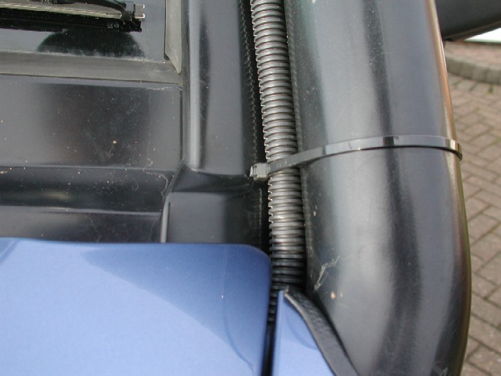 They are all contained in plastic conduit to keep them neat and tidy from where they come out of the inside of the car as the relays are mounted inside the fuse box panel. (see roof rack lights). From the engine bay, they go through a whole in the bulkhead which is already there under the soundproofing just near the heated front screen loom, and along the windscreen scuttle panel, then out by the snorkel and up to the roof rack.
